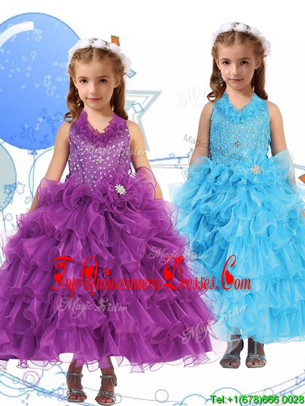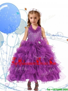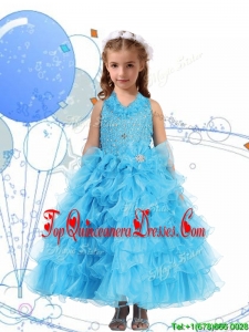 Affordable Halter Top Mini Quinceanera Dress with Beading and Ruffled Layers