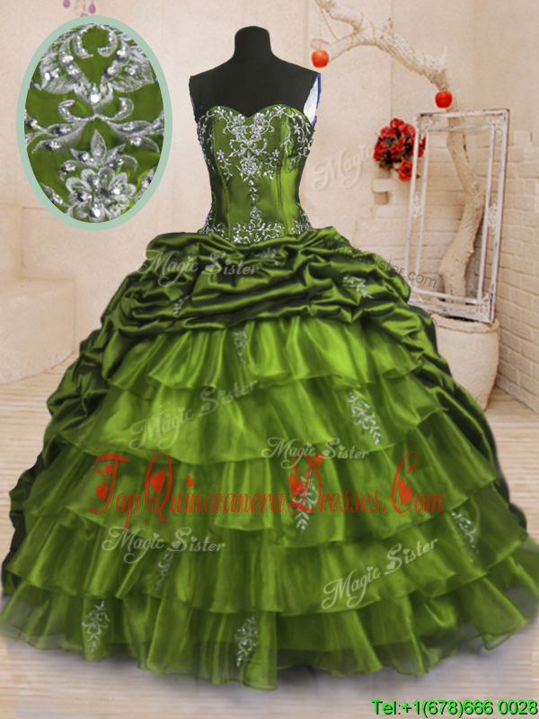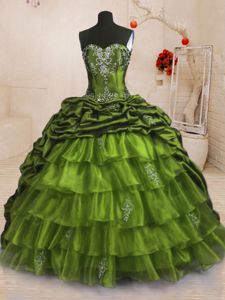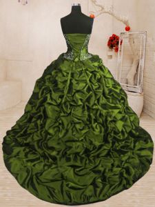 Affordable Pick Ups Ruffled With Train Olive Green Quinceanera Gown Sweetheart Sleeveless Sweep Train Lace Up