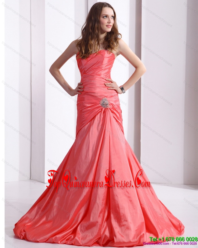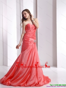 Affordable Ruching and Beading Gorgeous Dama Dress with Brush Train