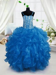 Affordable Sleeveless Beading and Ruffles Lace Up Pageant Dress for Teens