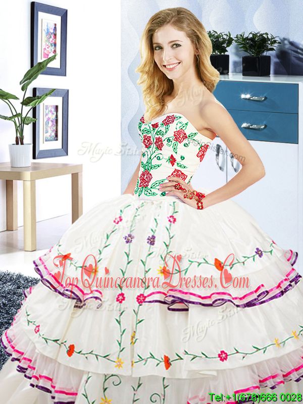 Affordable Sleeveless Embroidery and Ruffled Layers Lace Up Ball Gown Prom Dress
