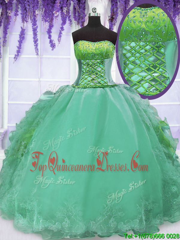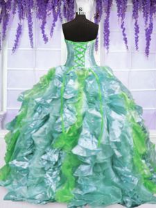 Affordable Sleeveless Embroidery and Ruffles Lace Up Quinceanera Gowns