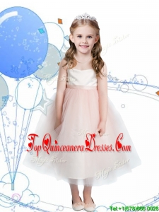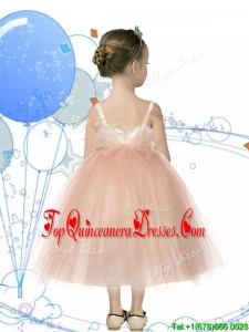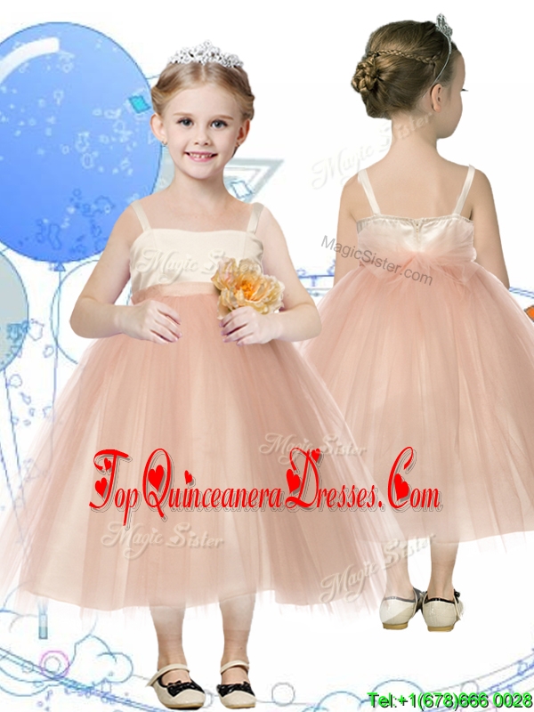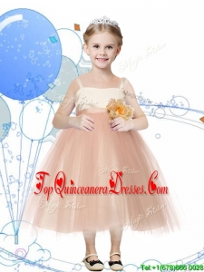 Affordable Spaghetti Straps Hand Made Flowers Mini Quinceanera Dress in Champagne