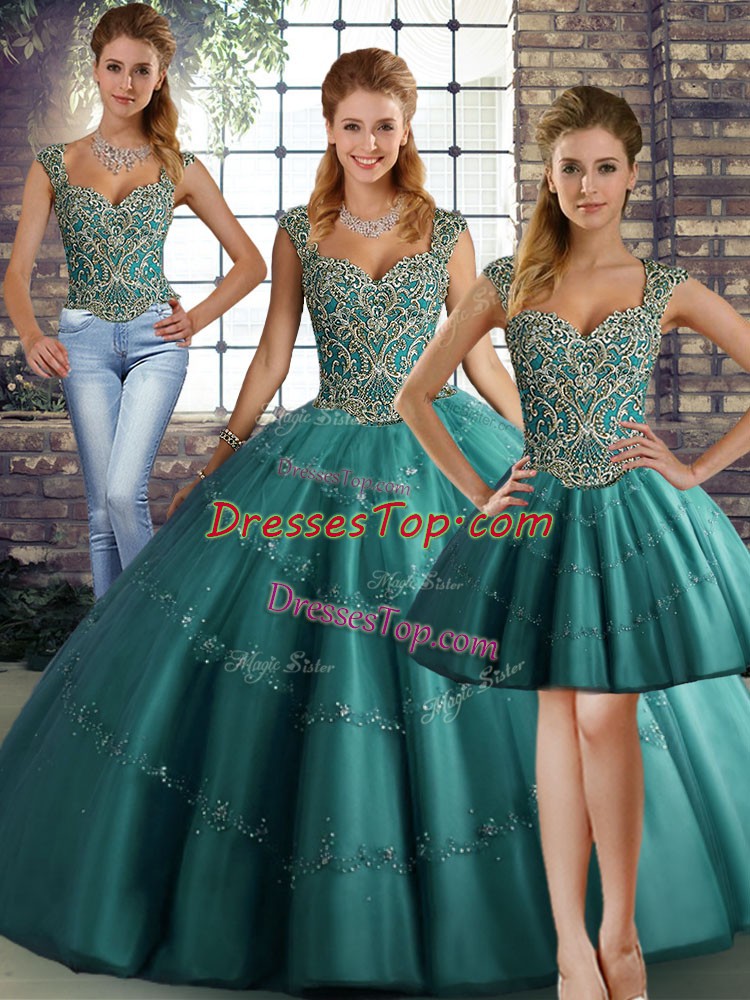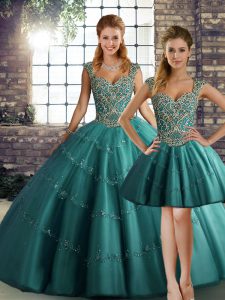 Affordable Teal Sleeveless Tulle Lace Up Quinceanera Dress for Military Ball and Sweet 16 and Quinceanera