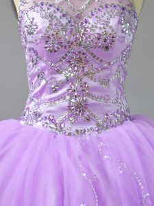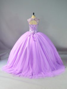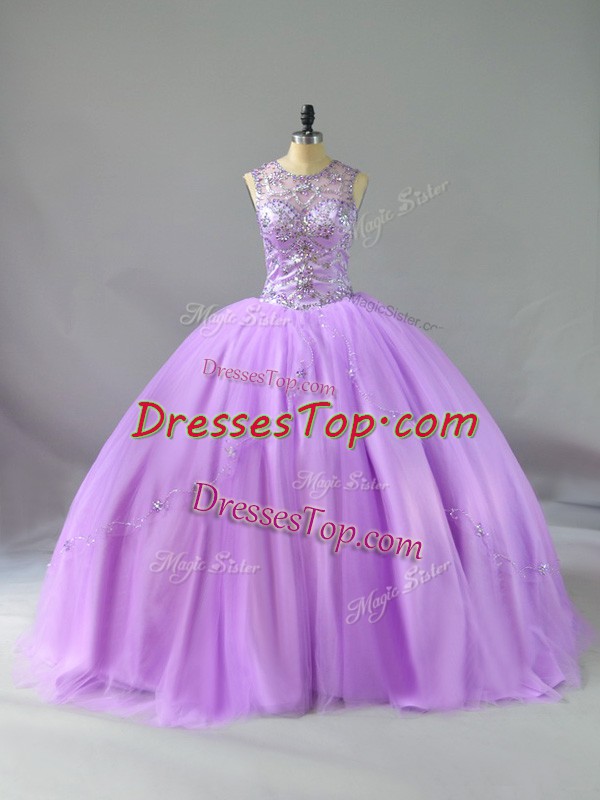 Affordable Tulle Scoop Sleeveless Lace Up Beading 15 Quinceanera Dress in Lavender