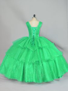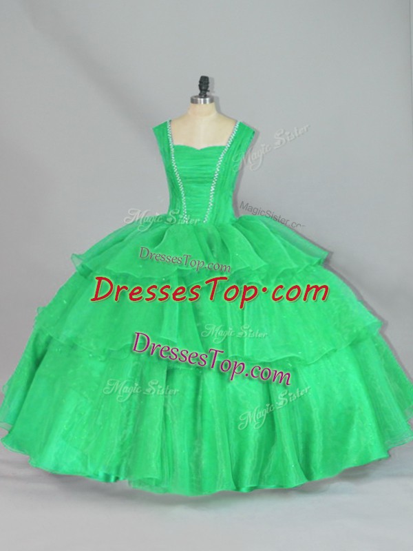 Affordable Turquoise Organza Lace Up Straps Sleeveless Floor Length Quinceanera Gown Beading and Ruffled Layers and Ruching