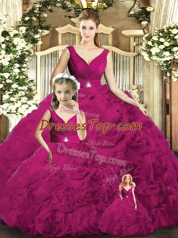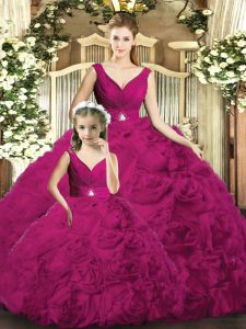 Affordable V-neck Sleeveless Fabric With Rolling Flowers Sweet 16 Dress Beading Backless
