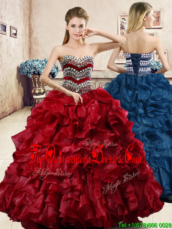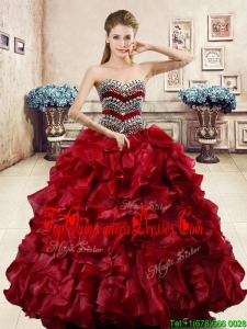 Affordable Wine Red Quinceanera Dress with Beading and Ruffles