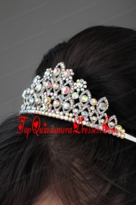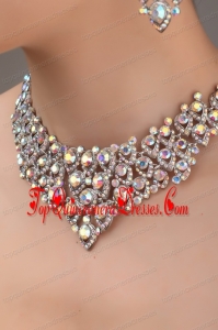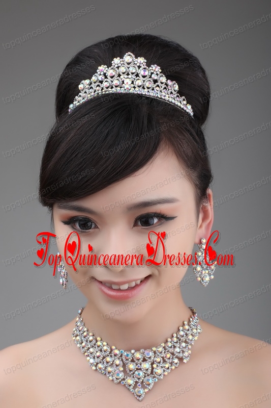 Alloy And Clear Colorful Rhinestone Jewelry Set With Crown Necklace And Earrings