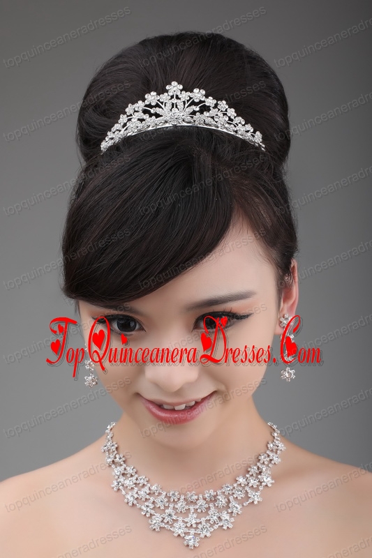 Alloy Rhinestone Intensive Flower Jewelry Set With Crown Necklace And Earrings