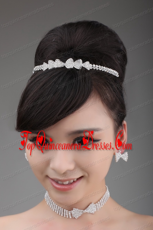 Alloy With Rhinestone Bowknot Jewelry Set Including Necklace Crown And Earrings
