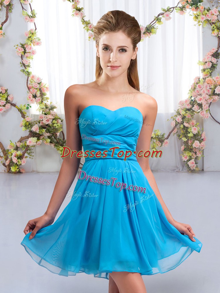 Amazing Aqua Blue Sweetheart Lace Up Ruching Quinceanera Dama Dress Sleeveless