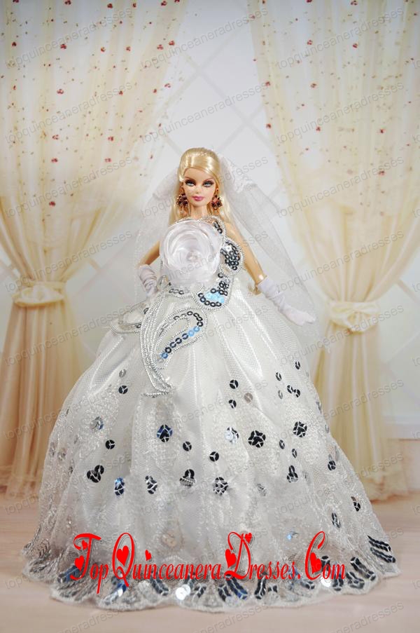 Amazing Ball Gown Dress For Noble Barbie With Sequin and Hand Made Flowers