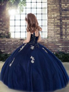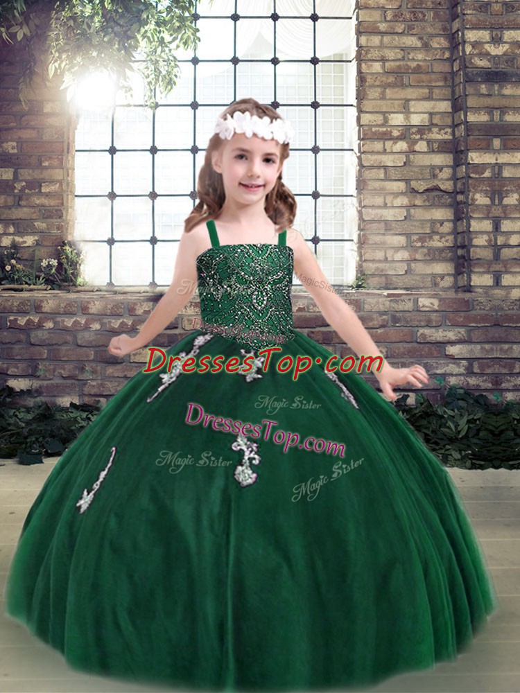 Amazing Dark Green High School Pageant Dress Party and Military Ball and Wedding Party with Appliques Straps Sleeveless Lace Up