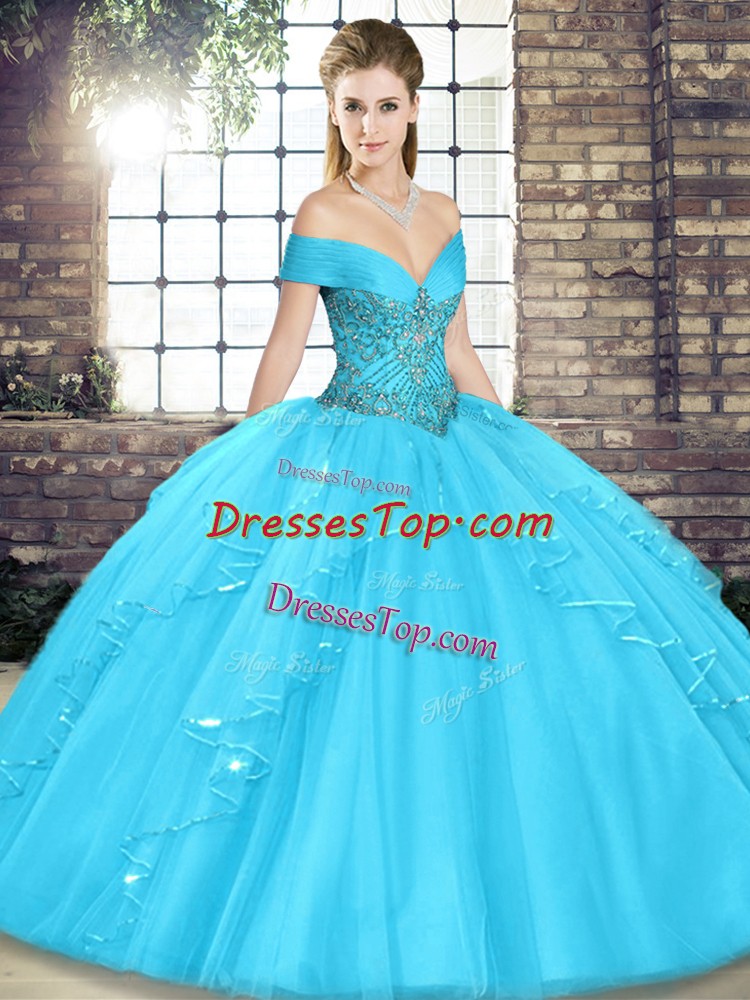 Amazing Floor Length Ball Gowns Sleeveless Aqua Blue Quinceanera Gowns Lace Up