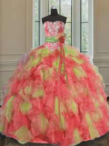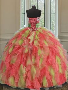 Amazing Hot Pink V-neck Zipper Beading and Ruffles 15th Birthday Dress Sleeveless