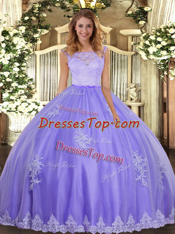 Amazing Lavender Tulle Clasp Handle Vestidos de Quinceanera Sleeveless Floor Length Lace and Appliques