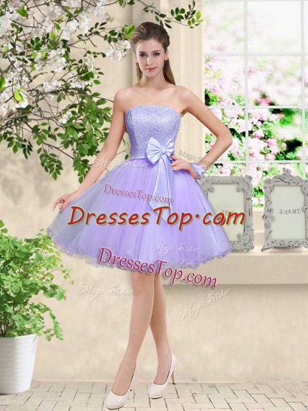 Amazing Lilac Off The Shoulder Neckline Lace and Belt Vestidos de Damas Sleeveless Lace Up