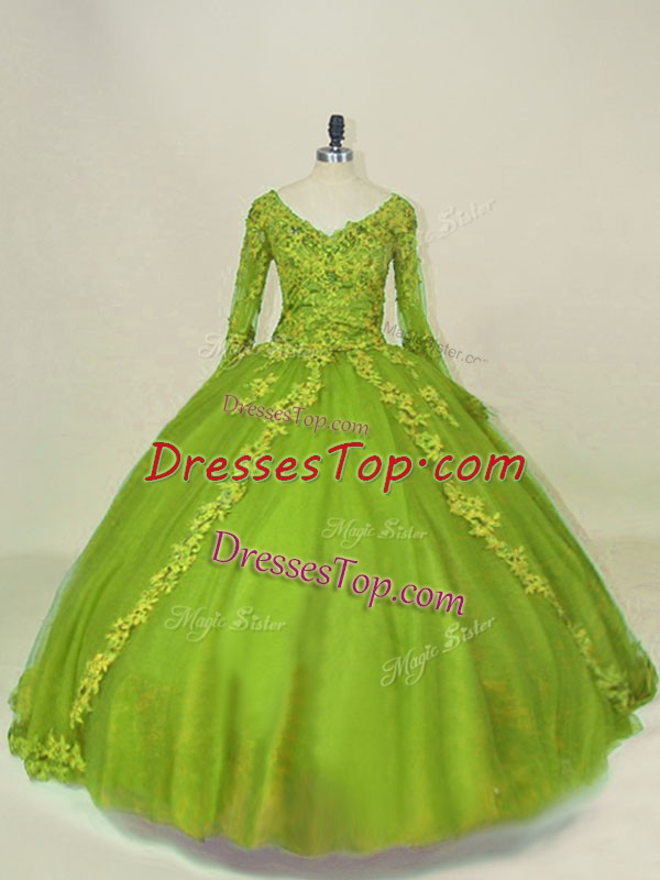 Amazing Olive Green Long Sleeves Lace and Appliques Sweet 16 Quinceanera Dress