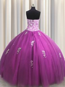 Amazing Puffy Skirt Sleeveless Floor Length Beading and Sequins Lace Up Sweet 16 Quinceanera Dress with Apple Green