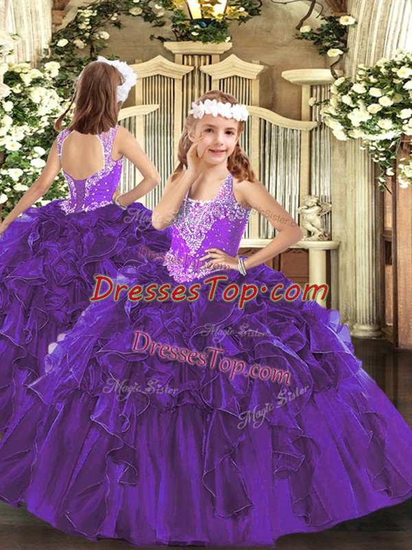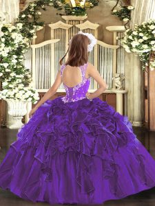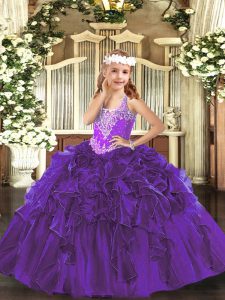 Amazing Purple Sleeveless Floor Length Beading and Ruffles Lace Up Pageant Dress for Womens