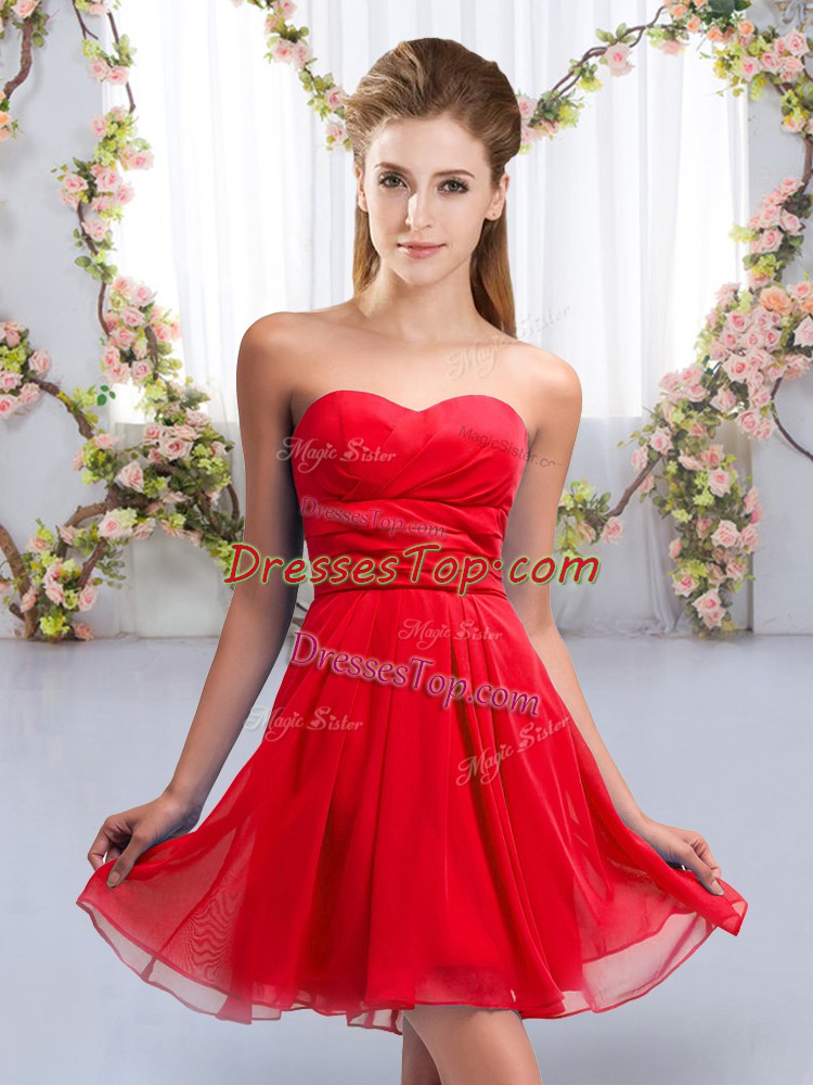 Amazing Red Empire Chiffon Sweetheart Sleeveless Ruching Mini Length Lace Up Court Dresses for Sweet 16