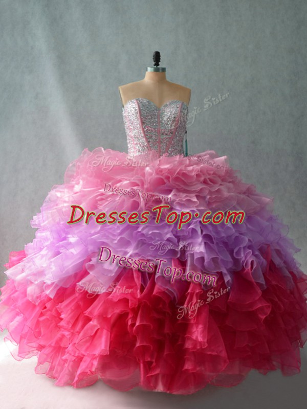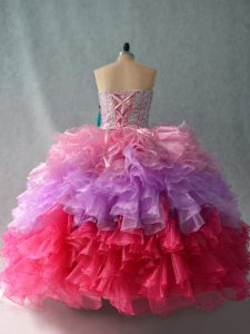 Amazing Sweetheart Sleeveless Organza Ball Gown Prom Dress Beading and Ruffles Lace Up