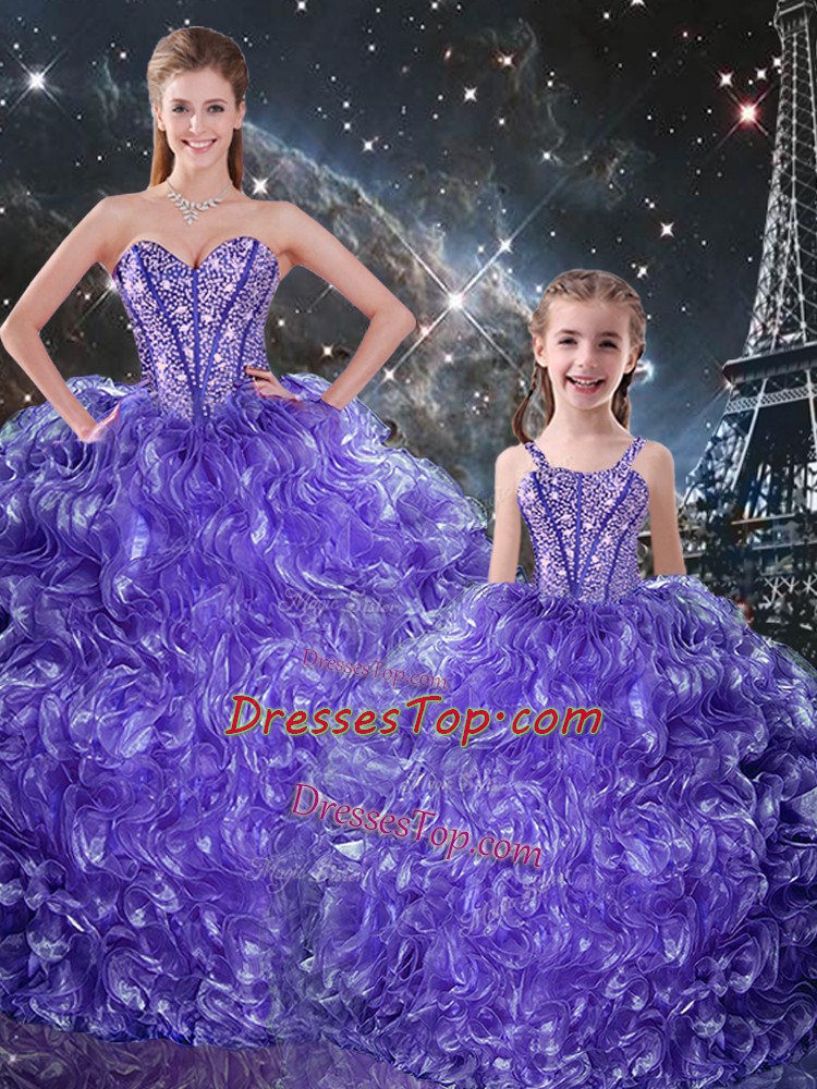 Amazing Sweetheart Sleeveless Vestidos de Quinceanera Floor Length Beading and Ruffles Purple Organza