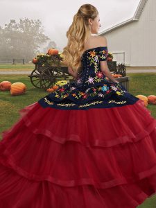 Amazing Tulle Sleeveless Quinceanera Dresses Brush Train and Embroidery and Ruffled Layers