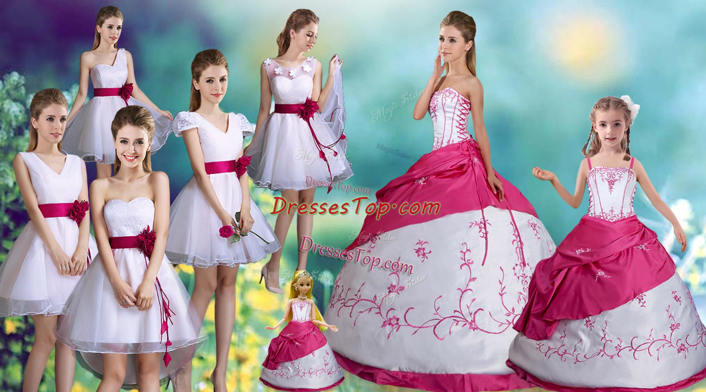 Amazing White Ball Gowns Embroidery and Pick Ups Quince Ball Gowns Lace Up Taffeta Sleeveless Floor Length