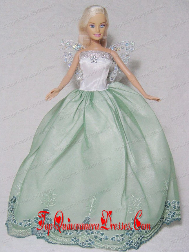 Apple Green and White Gown With Embroidery For Barbie Doll