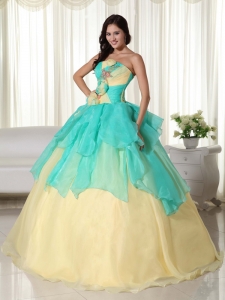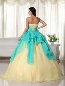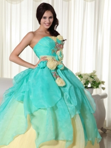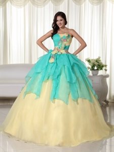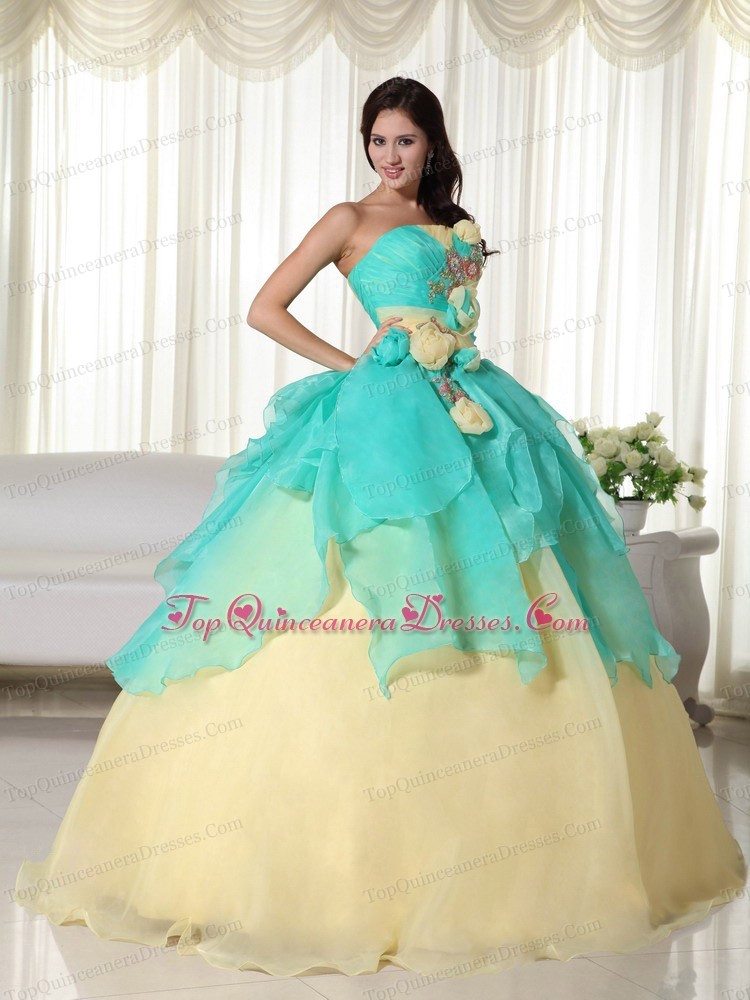 Apple Green and Yellow Ball Gown Strapless Quinceanera Dress