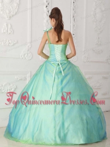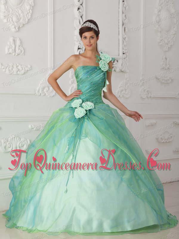 Apple Green Ball Gown One Shoulder Floor-length Organza Beading and Hand Flower Unique Quinceanera Dress