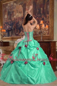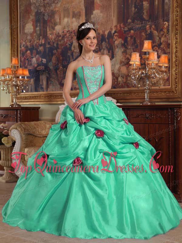 Apple Green Ball Gown Strapless Floor-length Taffeta Beading and 3D Flower Fashionable Quinceanera Dress