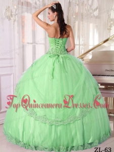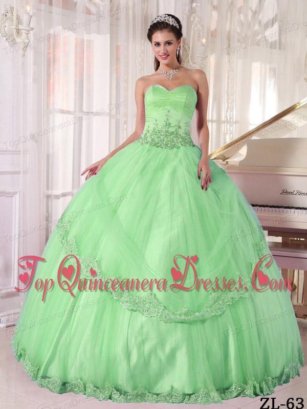 Apple Green Ball Gown Sweetheart Floor-length Taffeta and Tulle Appliques Quinceanera Dress