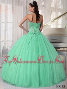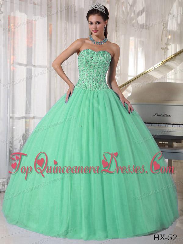 Apple Green Ball Gown Sweetheart Floor-length Tulle Beading Fashionable Quinceanera Dress