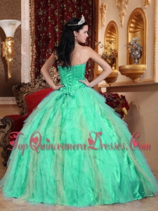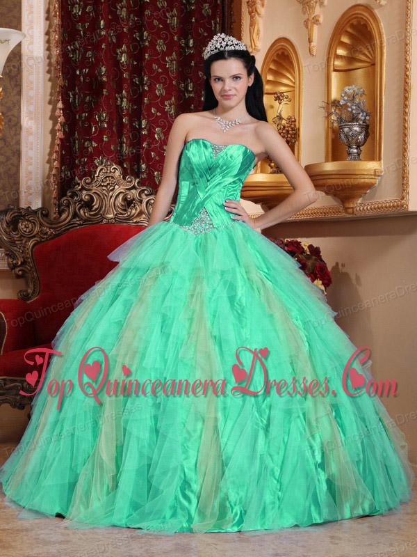 Apple Green Ball Gown Sweetheart Floor-length Tulle Beading Fashionable Quinceanera Dress