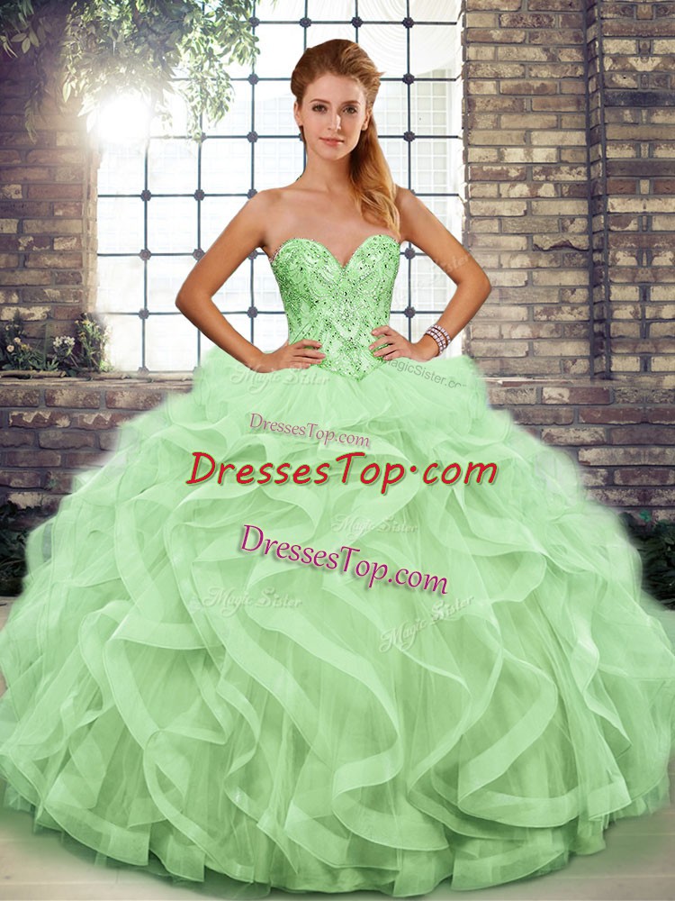 Apple Green Ball Gowns Beading and Ruffles Ball Gown Prom Dress Lace Up Tulle Sleeveless Floor Length