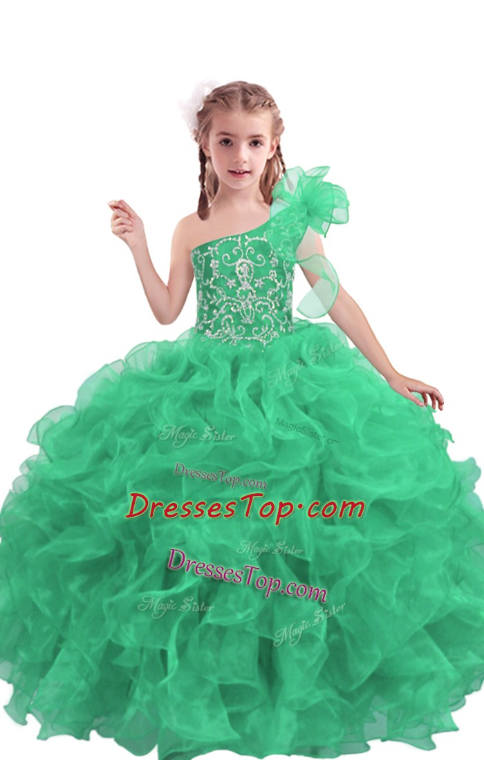 Apple Green Ball Gowns Beading and Ruffles Girls Pageant Dresses Lace Up Organza Sleeveless Floor Length