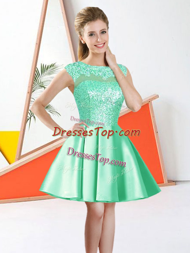 Apple Green Bateau Backless Beading and Lace Quinceanera Court Dresses Sleeveless