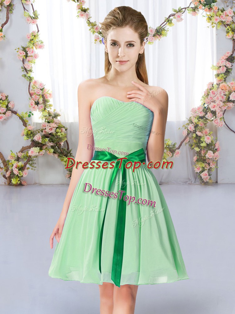 Apple Green Chiffon Lace Up Sweetheart Sleeveless Mini Length Quinceanera Court Dresses Belt