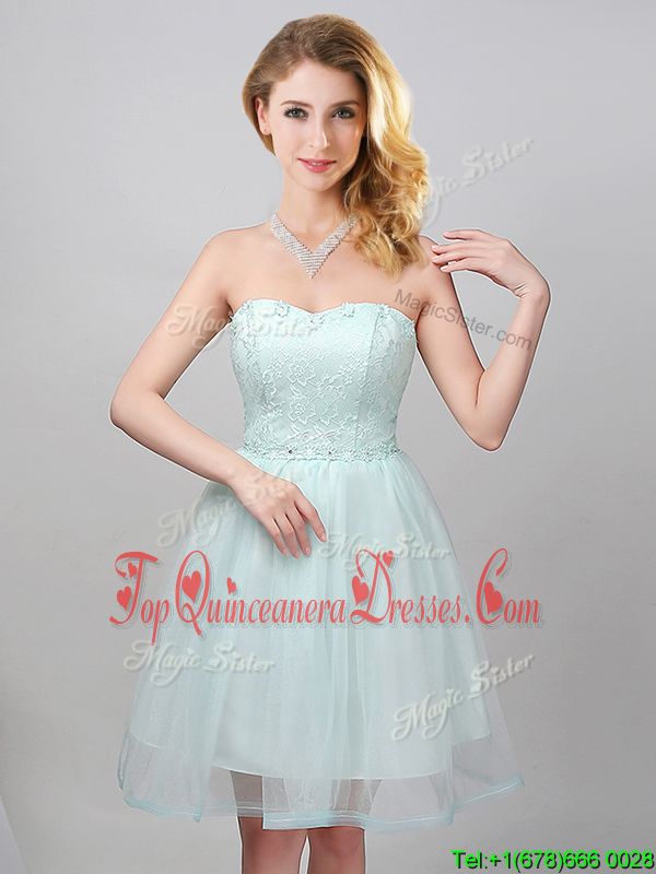 Apple Green Lace Up Sweetheart Lace and Appliques Court Dresses for Sweet 16 Tulle Sleeveless