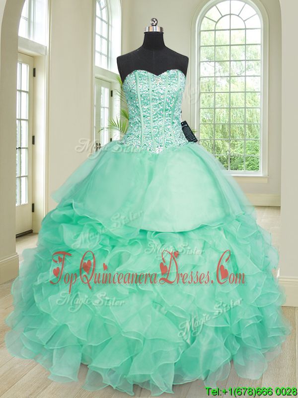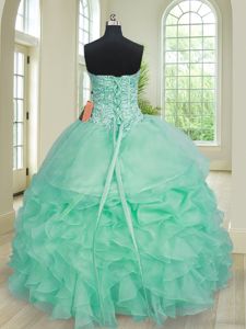 Apple Green Sleeveless Beading and Ruffles Floor Length Sweet 16 Dress