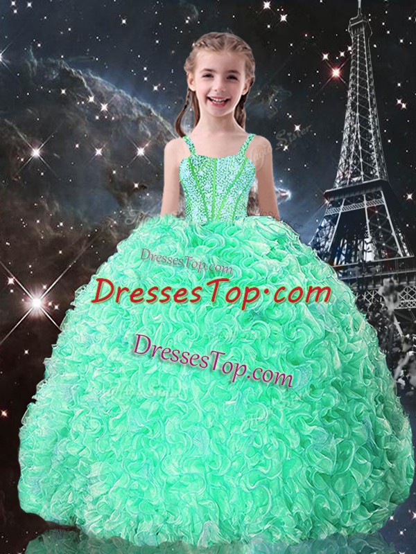 Apple Green Sleeveless Floor Length Beading and Ruffles Lace Up Pageant Gowns