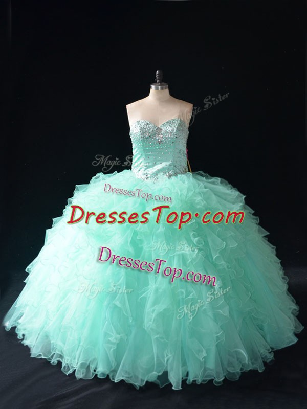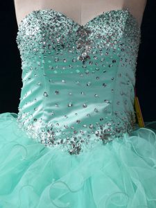 Apple Green Sleeveless Floor Length Beading and Ruffles Lace Up Quinceanera Dress