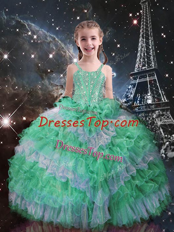 Apple Green Sleeveless Organza Lace Up Pageant Dress Wholesale for Quinceanera and Wedding Party