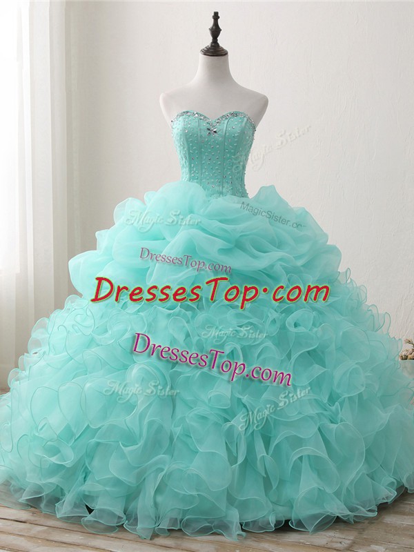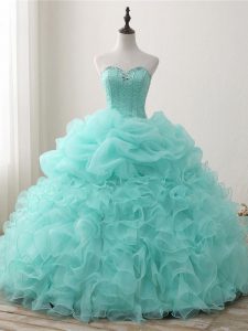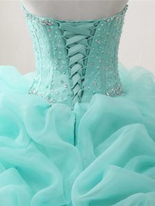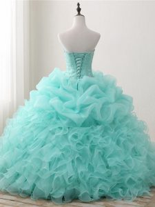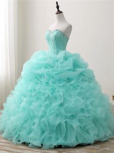 Apple Green Sleeveless Organza Lace Up Quinceanera Gown for Military Ball and Sweet 16 and Quinceanera