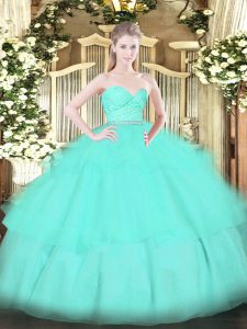 Apple Green Sleeveless Tulle Zipper Quinceanera Dresses for Military Ball and Sweet 16 and Quinceanera