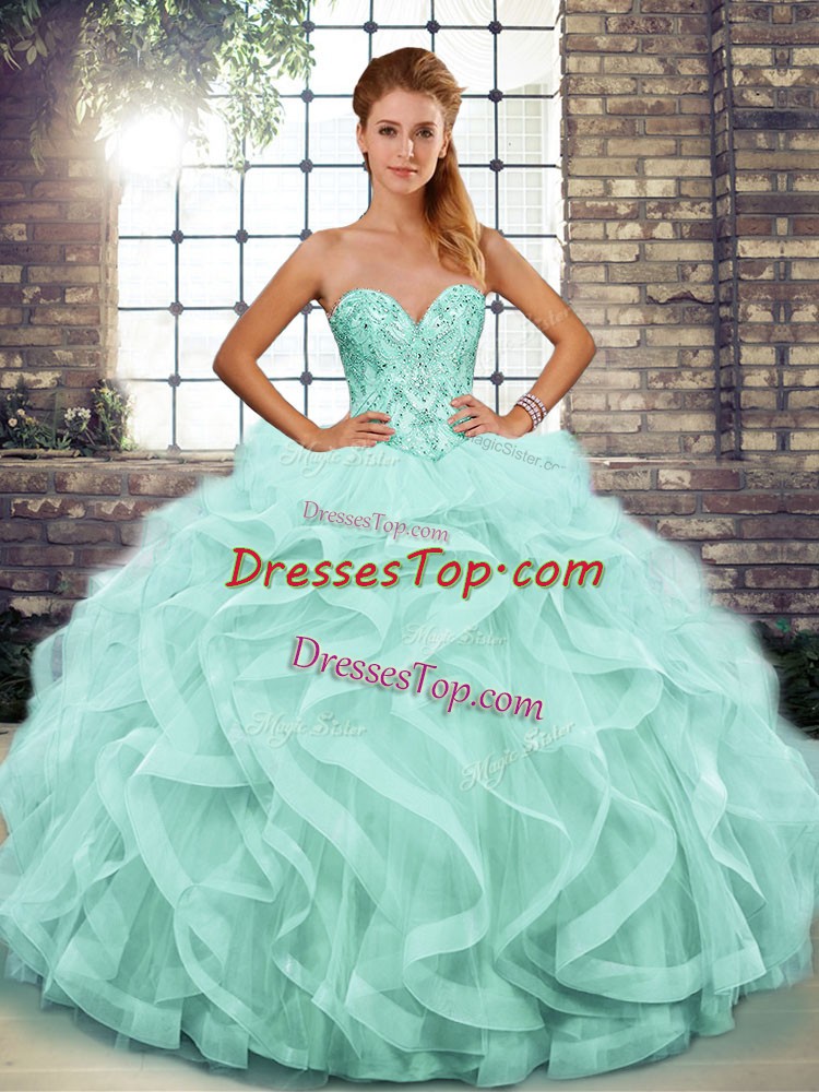Apple Green Sweetheart Neckline Beading and Ruffles Quinceanera Dress Sleeveless Lace Up