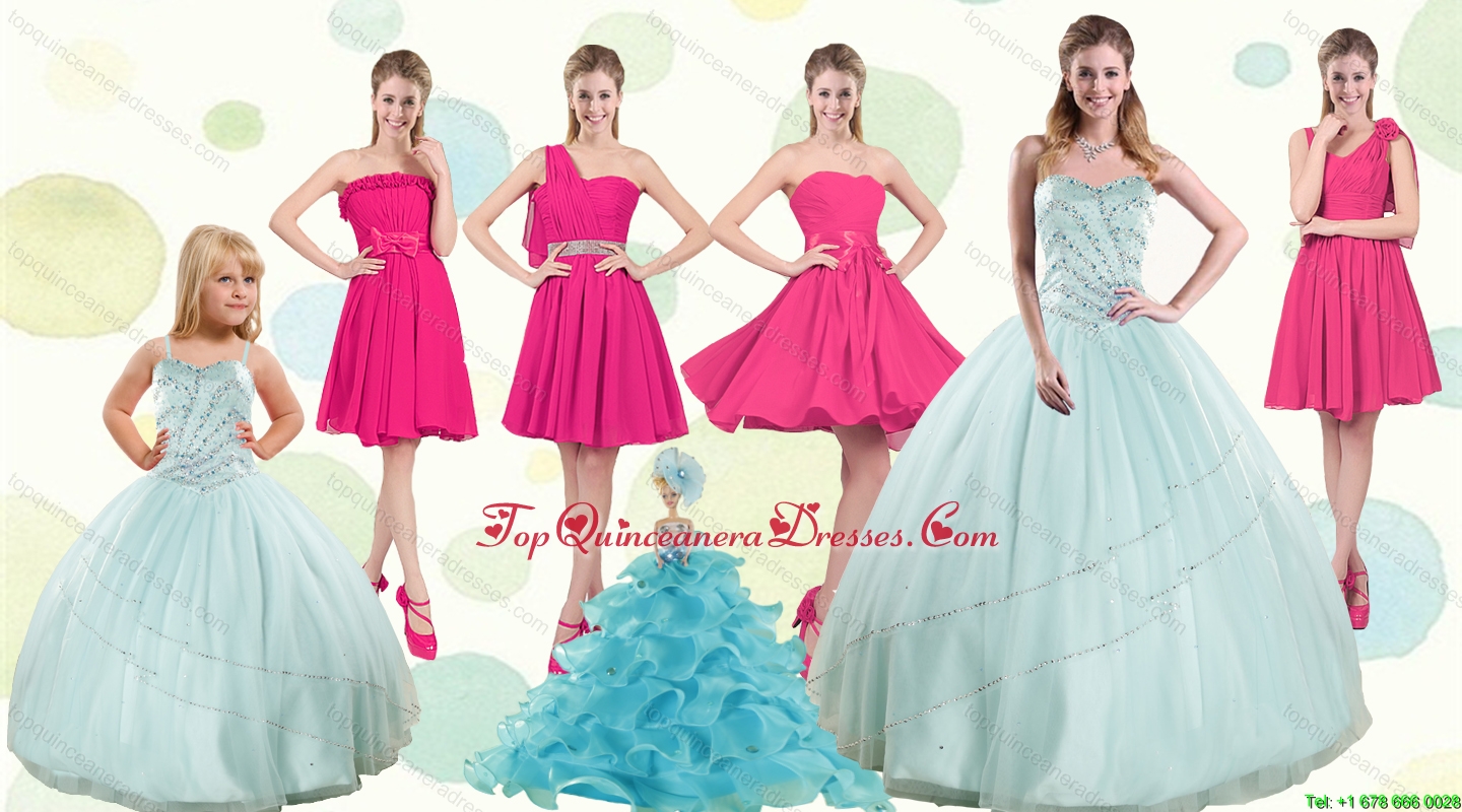Apple Green Sweetheart Quinceanera Dress and Hot Pink Knee Length Prom Dresses and Beading and Ruffles Little Girl Dress